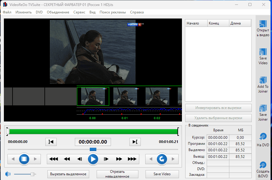 - Вырезание рекламы без перекодирования