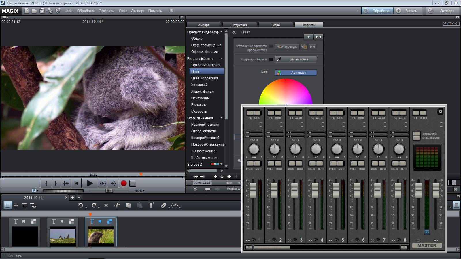 MAGIX Видео делюкс 21 Plus 14.0.0.160 — продвинутый видеоредактор 2014 года для точного монтажа и обработки видеоматериалов с использованием 99 дорожек, 64-битной архитектуры, 4K-технологий, эксклюзивными бонусными программами, кинематографическими спецэффектами и оптимизацией для быстрой работы на современных системах.