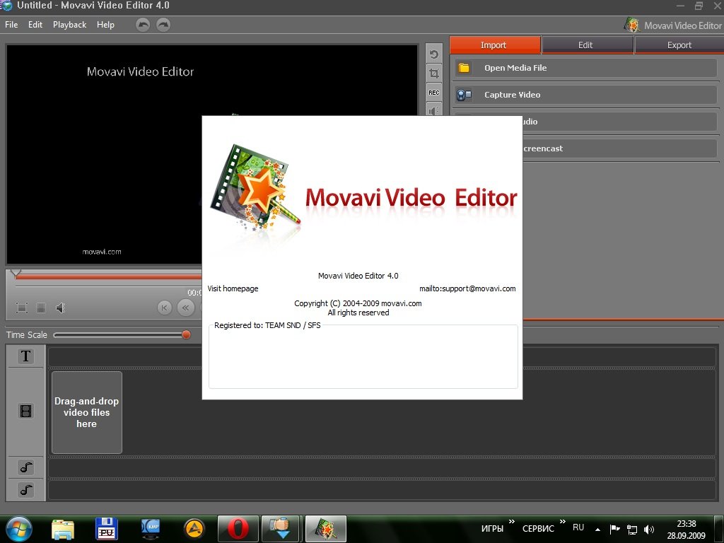 Movavi Video Editor v4.0.5 — функциональный инструмент 2009 года для обработки видеоматериалов с возможностью импорта из разных источников, независимого редактирования видео/аудио/титров на удобной графической панели, применения разнообразных фильтров/переходов/спецэффектов и автоматического формирования слайдшоу как эффективная альтернатива встроенному Windows Movie Maker с расширенной совместимостью форматов.