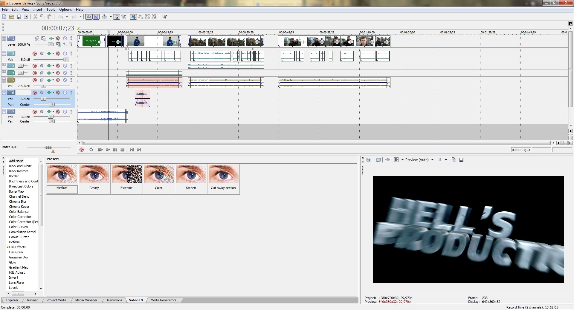 Sony Vegas Video 7.0d Build 192 — классический профессиональный инструмент 2006 года для многодорожечной записи/редактирования/монтажа видео/аудио потоков с неразрушающим нелинейным монтажом, обработкой эффектами в реальном времени, неограниченным количеством дорожек, многоканальным вводом-выводом в полном дуплексе и поддержкой до 26 физических выходов с независимым микшированием.