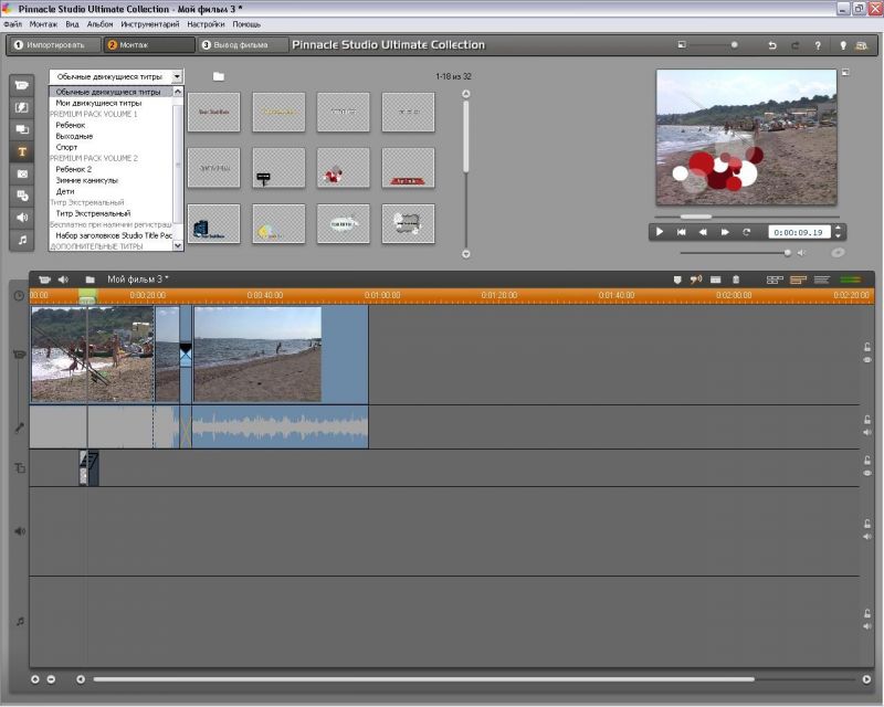 Включает обновлённый интерфейс/редактор титров/движение титров/новые дизайны титров/DVD меню/эффекты/80+ шаблонов Montage/stop-motion захват/быстрые эффекты/стабилизацию изображений Avid/stop-motion анимацию/запись Blu-ray для расширения возможностей монтажа.