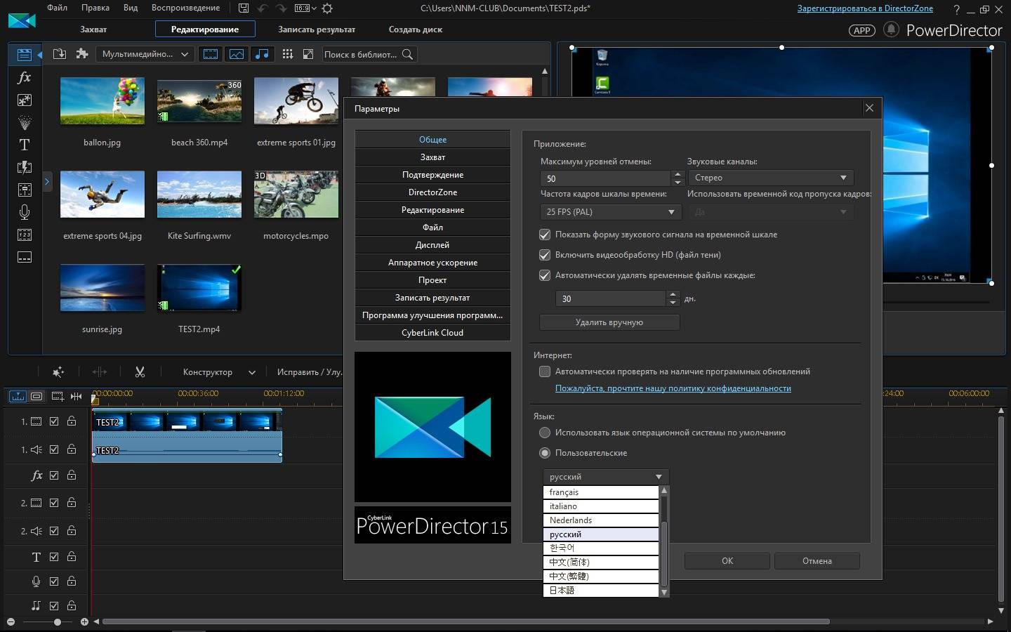 - Открыть файл MKV или MP4 с помощью PowerDirector
