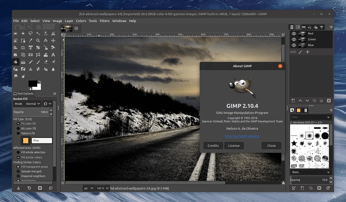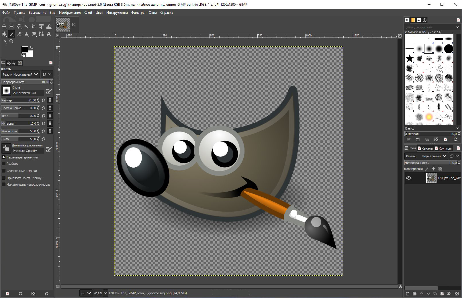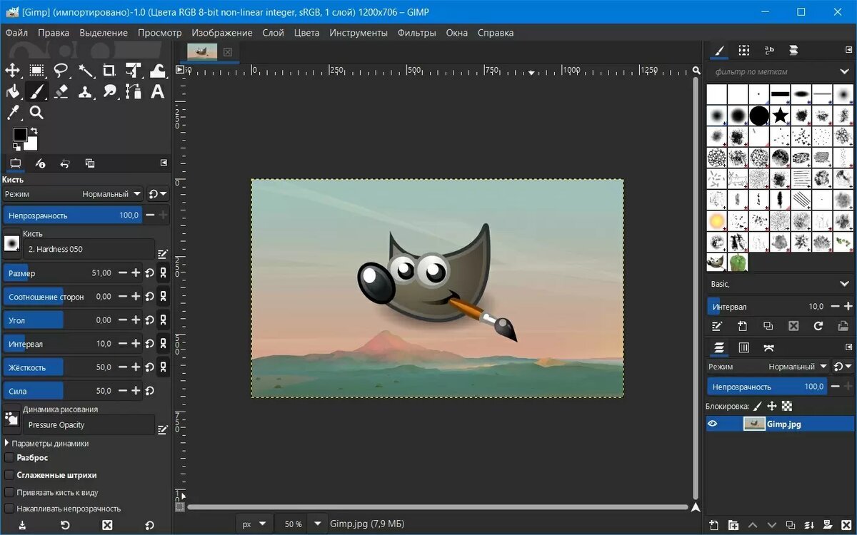Интерфейс GIMP интуитивно понятен, но при этом многофункционален. Главный экран состоит из панели инструментов, области изображения и множества дополнительных окон — для слоев, кистей, истории действий и других параметров. Пользователь может свободно перемещать эти панели, закреплять их в удобных местах или объединять в один интерфейс.