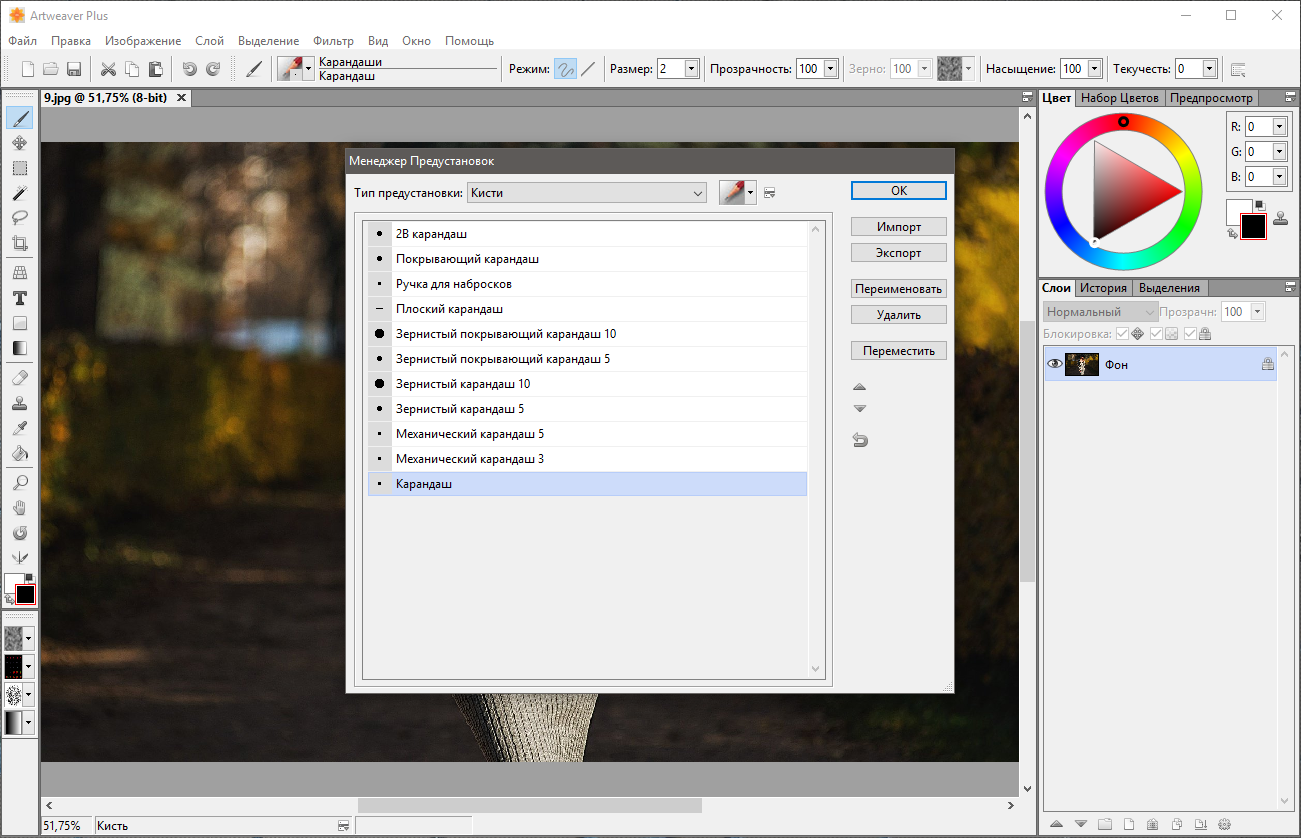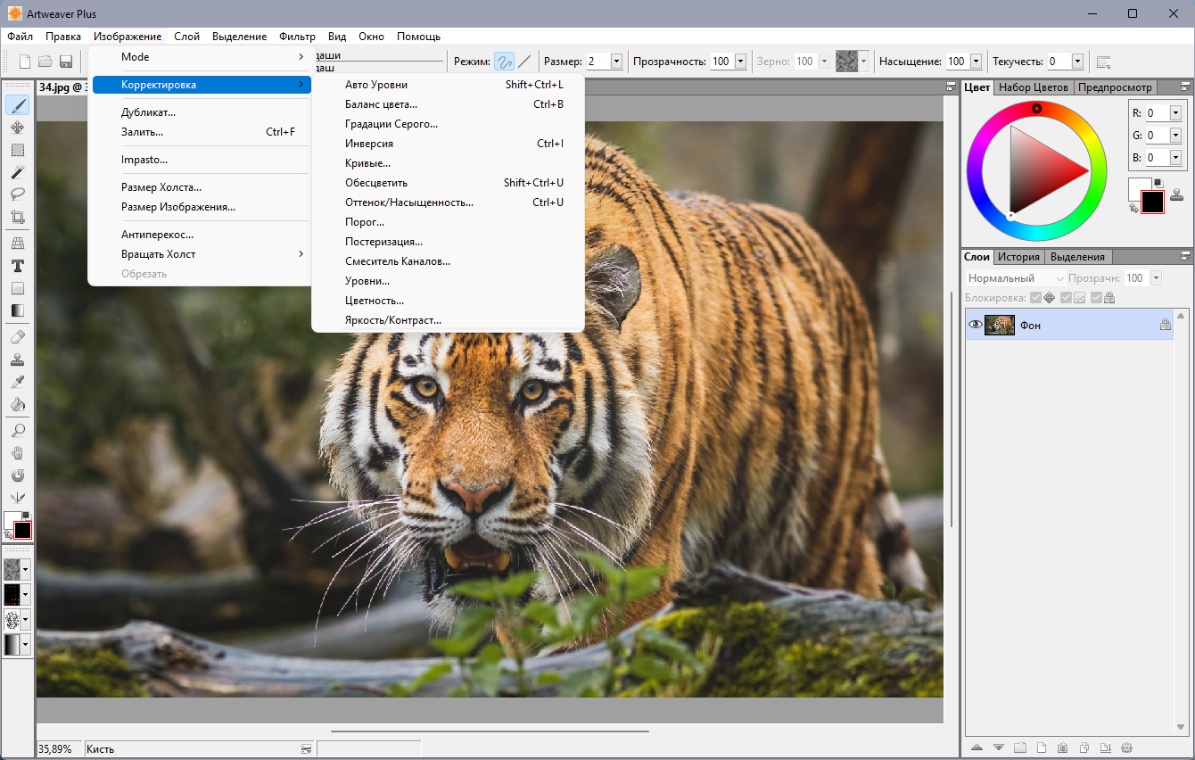 Artweaver включает широкий набор фильтров и эффектов, которые позволяют не только обрабатывать фотографии, но и создавать художественные стилизации. Встроенные инструменты обеспечивают как базовую коррекцию цвета, так и сложные визуальные преобразования изображений.