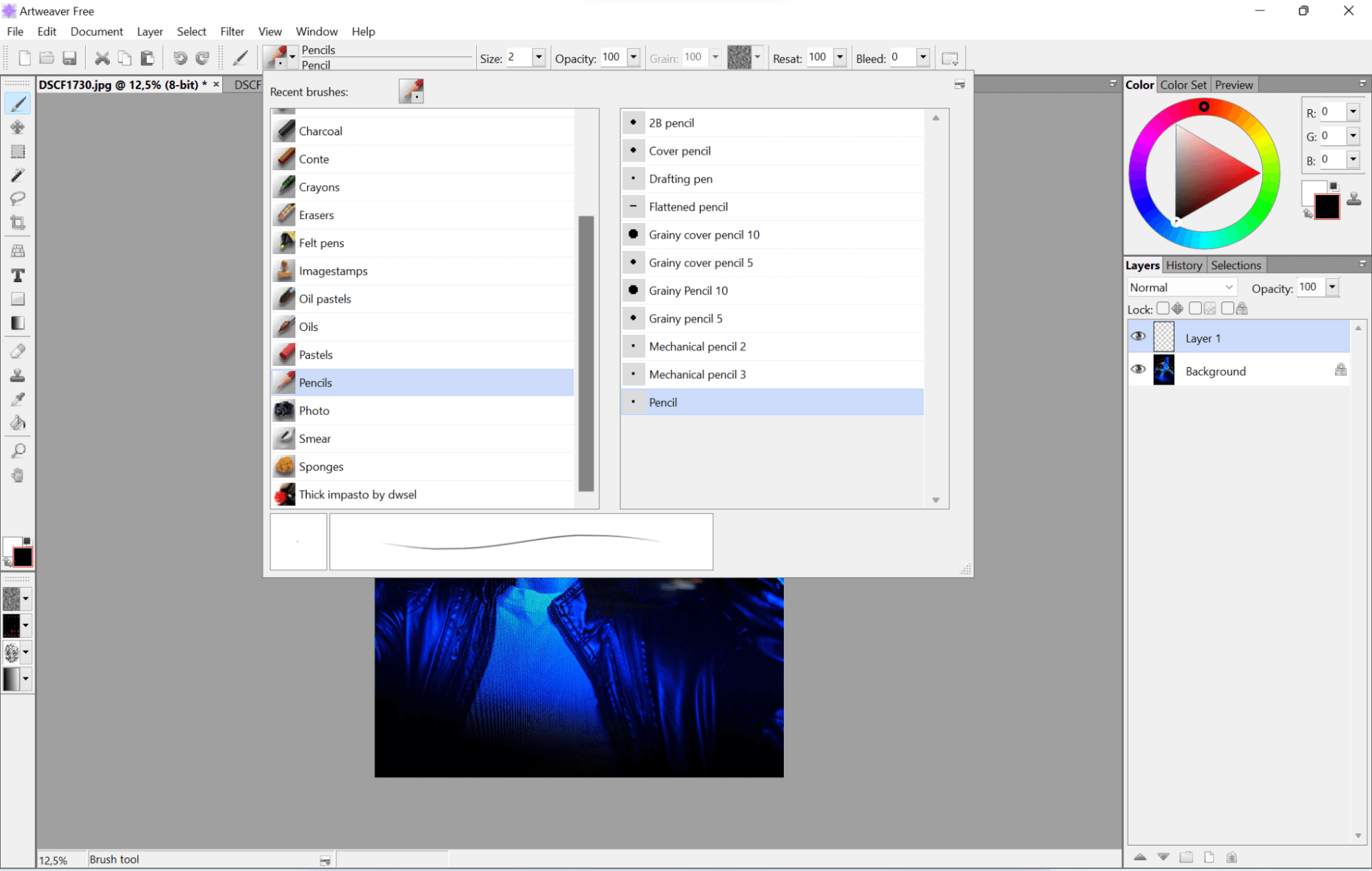 Artweaver предоставляет художникам широкий выбор инструментов для рисования, подходящих для любых стилей — от набросков до реалистичной цифровой живописи. Все инструменты реагируют на давление пера и имеют множество настраиваемых параметров.