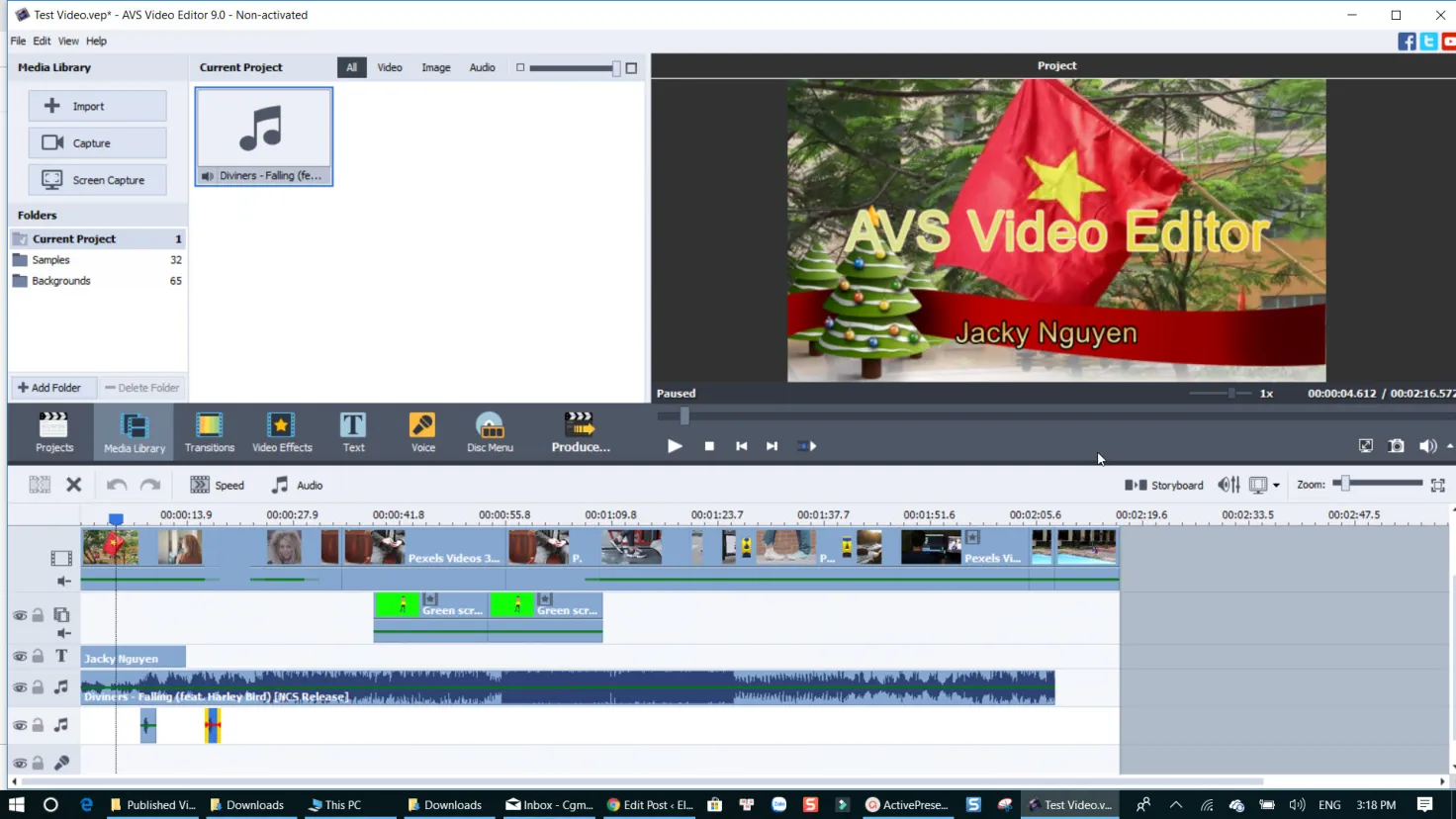 - Добавьте в проект видео, музыку и изображения.