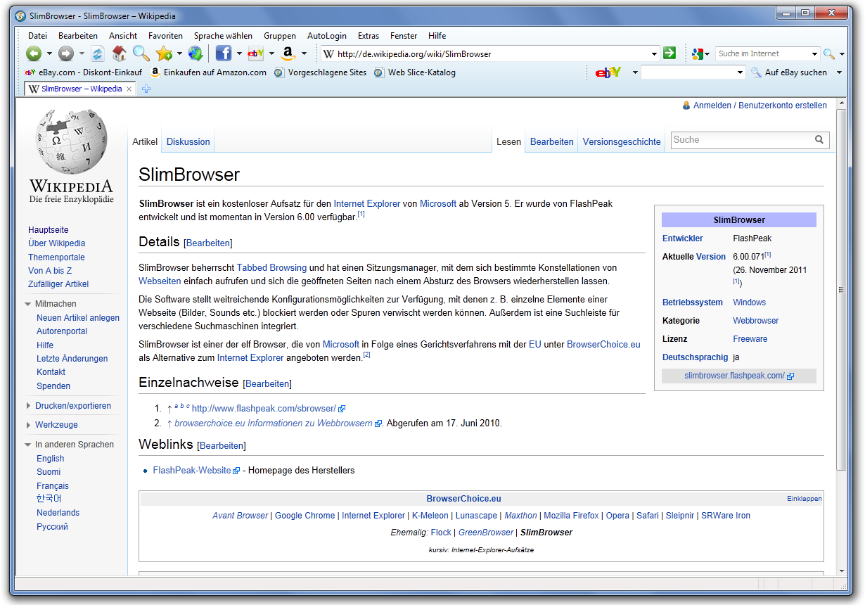 SlimBrowser ориентирован на практичность и скорость. В нем реализованы только действительно полезные функции, которые востребованы при повседневном серфинге.