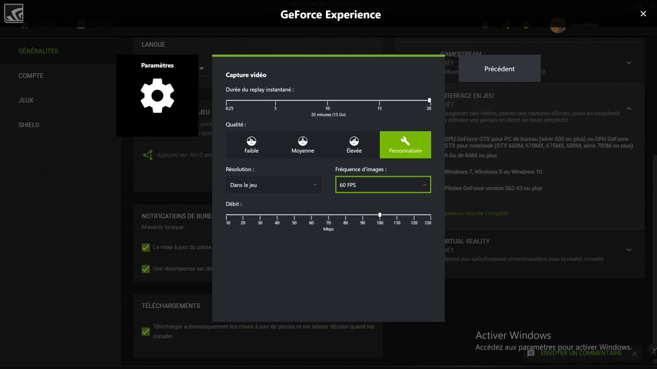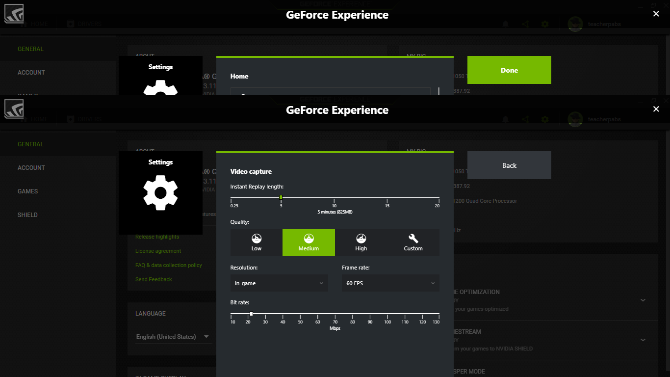 Качество видео и параметры записи в Nvidia ShadowPlay