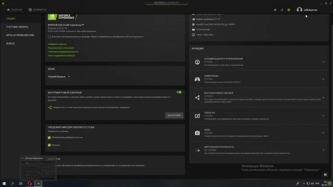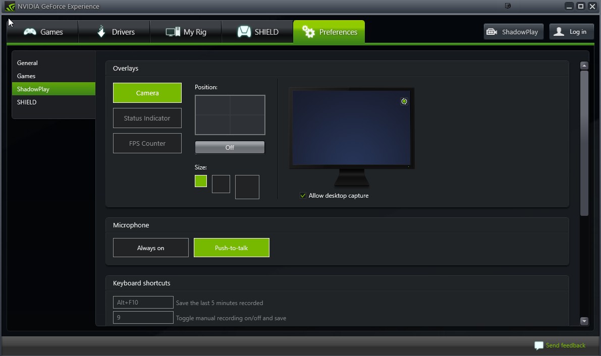 Запись рабочего стола и приложений в Nvidia ShadowPlay