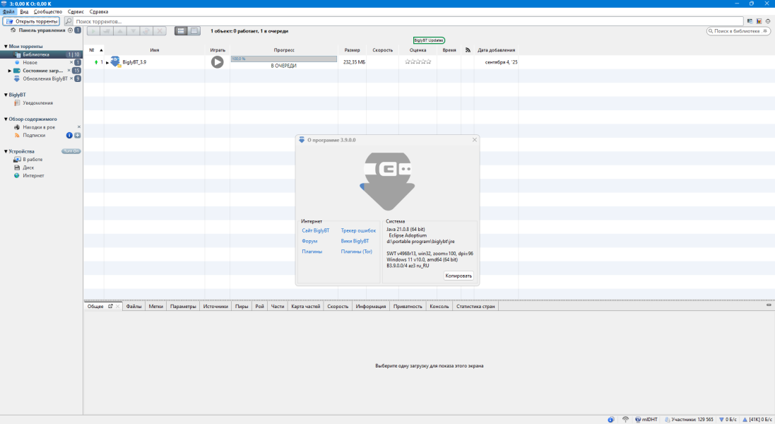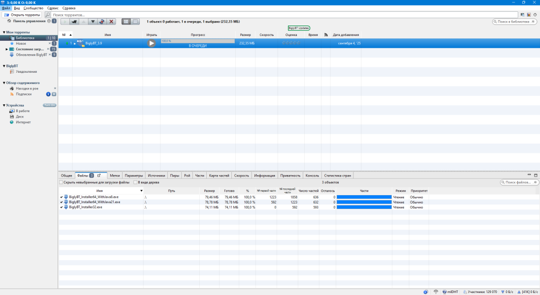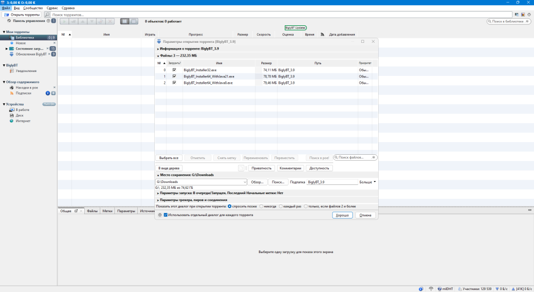 ● BiglyBT_Installer64_WithJava21.exe — современная сборка на Java 21, рассчитанная на Windows 10–11 для максимальной совместимости и производительности