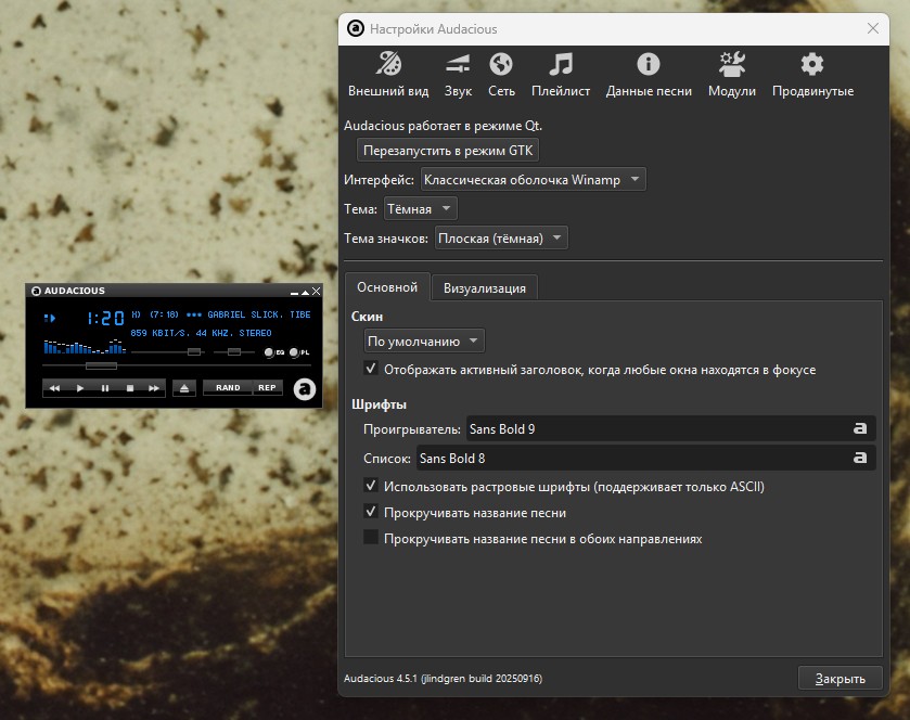 ● Выбор между современным Qt/GTK интерфейсом и классическим оформлением Winamp