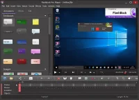 После завершения записи проект автоматически открывается в редакторе BB FlashBack Player, где пользователь может просмотреть ролик, вырезать лишние фрагменты, добавить титры, аннотации и эффекты курсора. Окно редактирования построено по принципу временной шкалы — видео, звук и комментарии отображаются в отдельных дорожках.