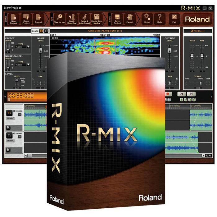 Roland VS R-Mix — уникальная программа, которая выводит работу со стереозвуком на новый уровень. Она использует фирменные технологии Roland V-Remastering и VariPhrase, позволяя «видеть» составляющие микса в виде цветных кластеров энергии и гармоник. Прямо во время воспроизведения пользователь может изолировать инструменты, менять громкость, панораму, тонировать или полностью удалять элементы записи. Софт подходит для создания минусовок, караоке, ремиксов, обучения игре по записям и восстановления старого материала.