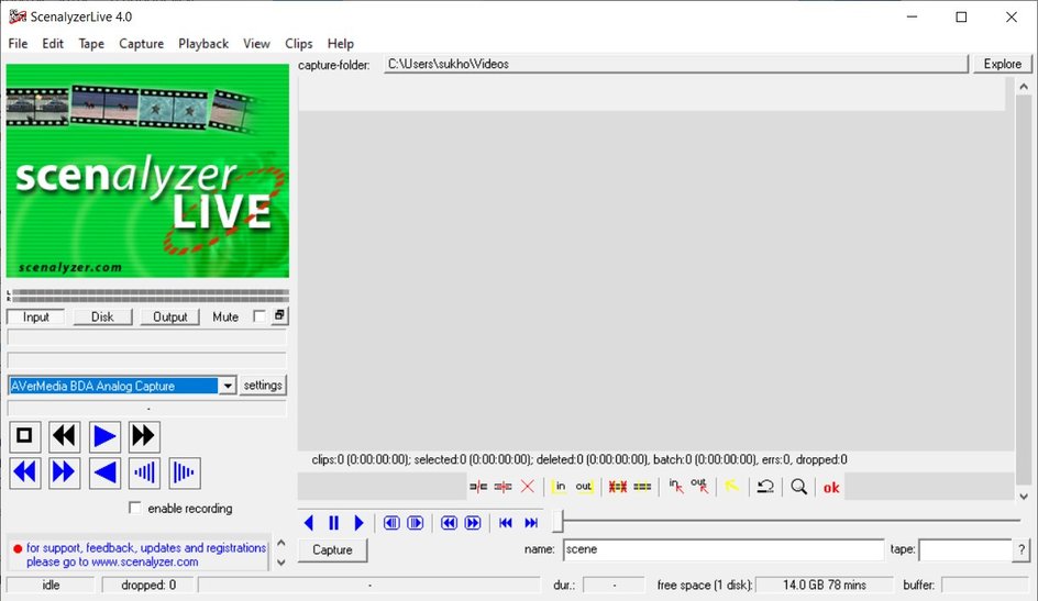 ScenalyzerLive 4.0 — специализированная утилита предназначенная для захвата DV видео с камер с автоматическим разбиением записи на отдельные сцены по обнаружению остановок камеры через таймкод для удобного последующего монтажа/хранения материалов с обходом ограничений FAT32 в 4 ГБ путём разделения потока на файлы заданного размера для непрерывной работы без прерываний на старых системах с точной записью обратно на ленту включая имена файлов для лёгкого восстановления проектов на камере даже на компьютерах с не самыми быстрыми дисками где другие редакторы справляются хуже.